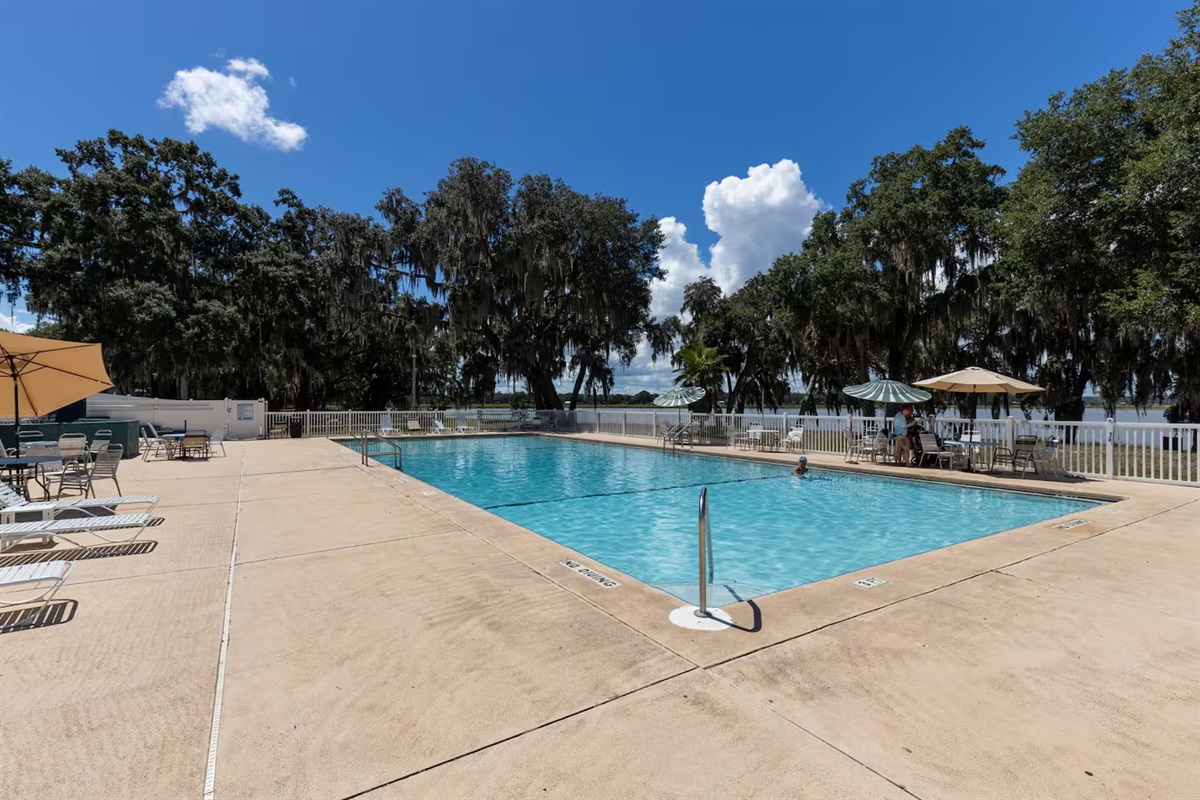 •Resort Perks: Family pool, lake front lodge with games & Wi‑Fi, tennis/basketball/horseshoes, picnic pavilion and fire Pit. Minutes to Salt Springs, Silver Glen, Juniper & Alexander Springs.