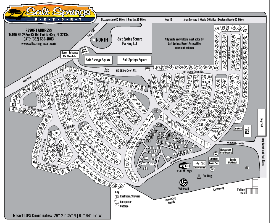 The gatehouse at Salt Springs Resort now uses DocuSign application to automate our guest registrations. This is a new check in process and is required for guests to complete in order to gain access to the resort. The DocuSign application does require the tenant to upload their photo ID and pay a gate processing charge (usually $20.00). We will ask for your email address to facilitate this process. RV's must be RVIA certified for entry to the resort, if you have a home-made RV, or a converted bus, the resort's gate staff will likely turn you away. The booking process asks questions about your unit. Misrepresenting your RV will result in no entry to the resort, and no refunds. Boat and Trailer parking is on your rented unit, additional parking may be available but is first come, first serve and will have posted time limits and requirements.